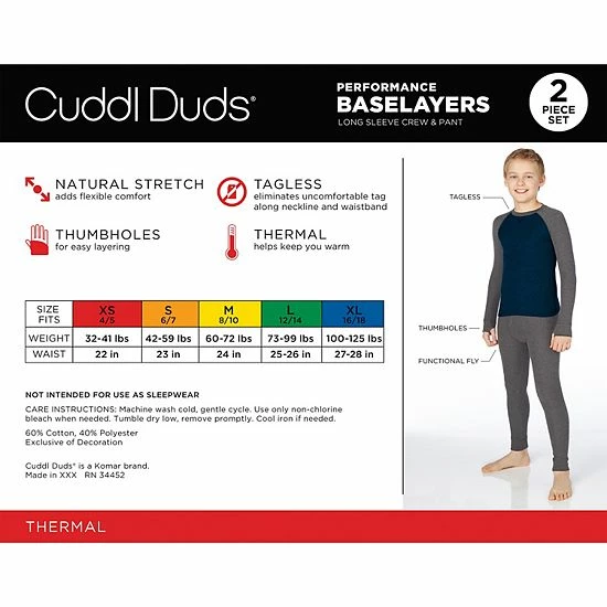 Layer him in warmth and comfort with this extra cozy boys’ Thermal 2-piece base layer set from Cuddl Duds.
